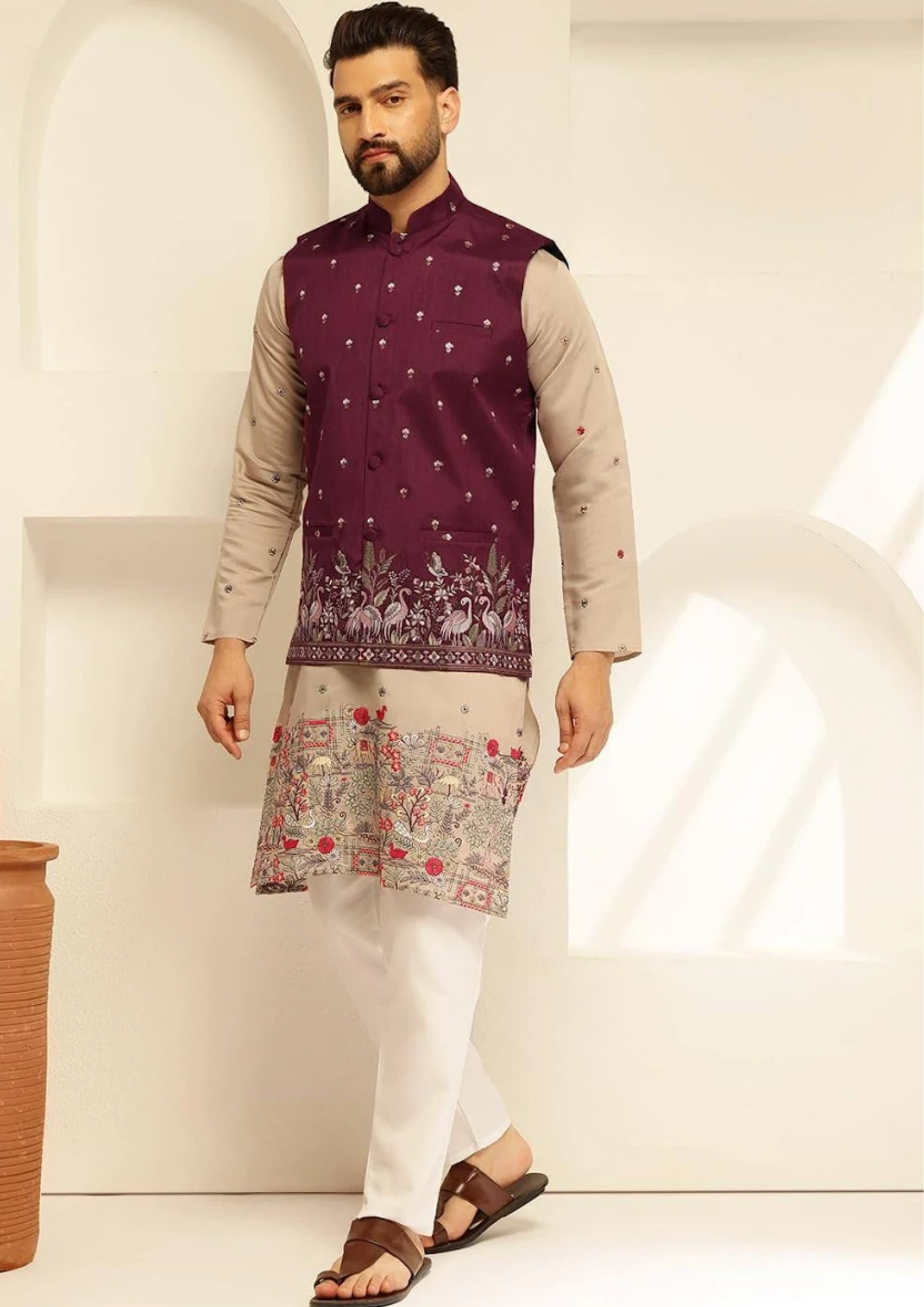 Royal Festive Maroon Kurta with Jacket