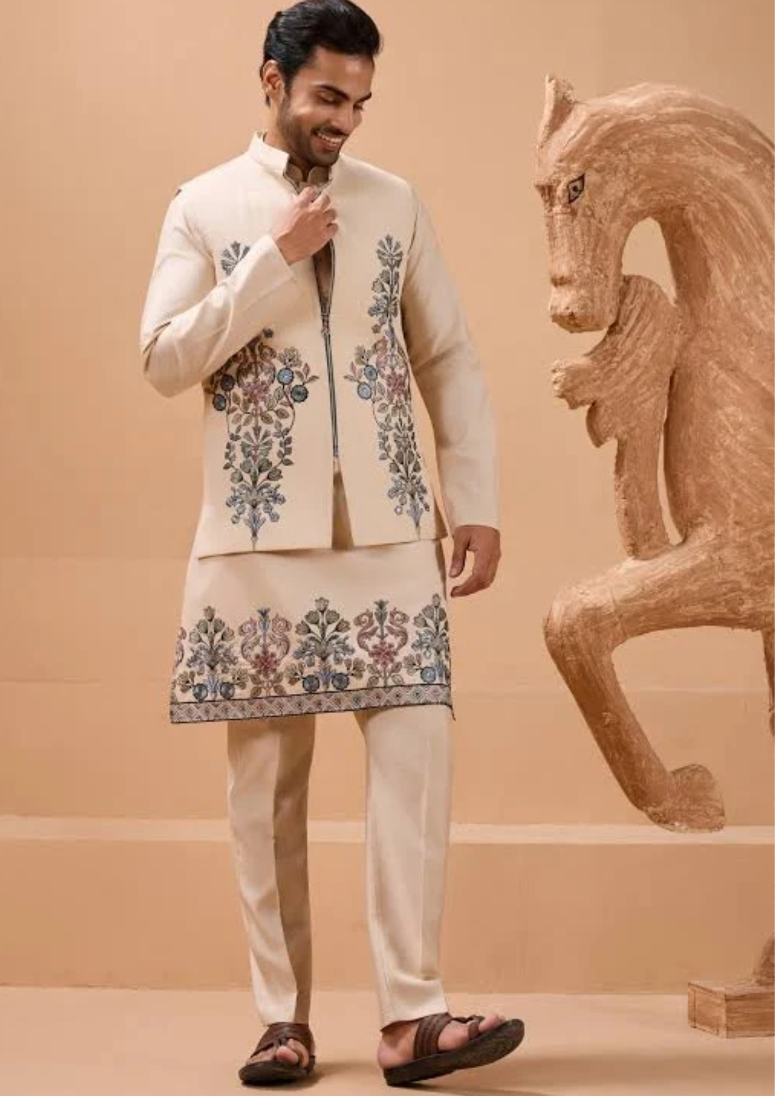 Royal IvoryEmbroidered Kurta Set for Men