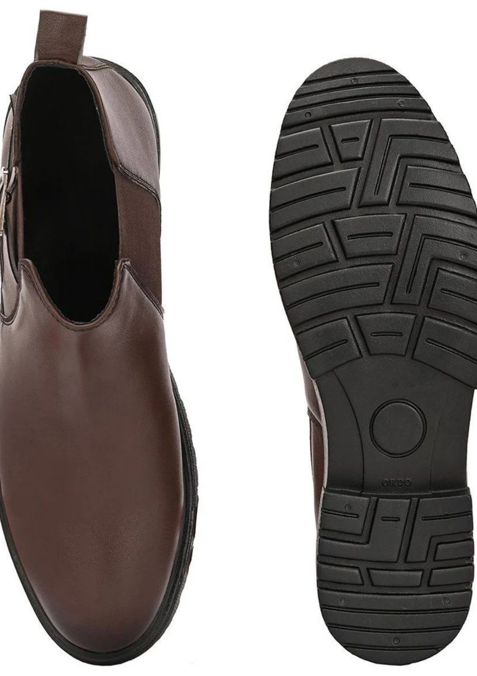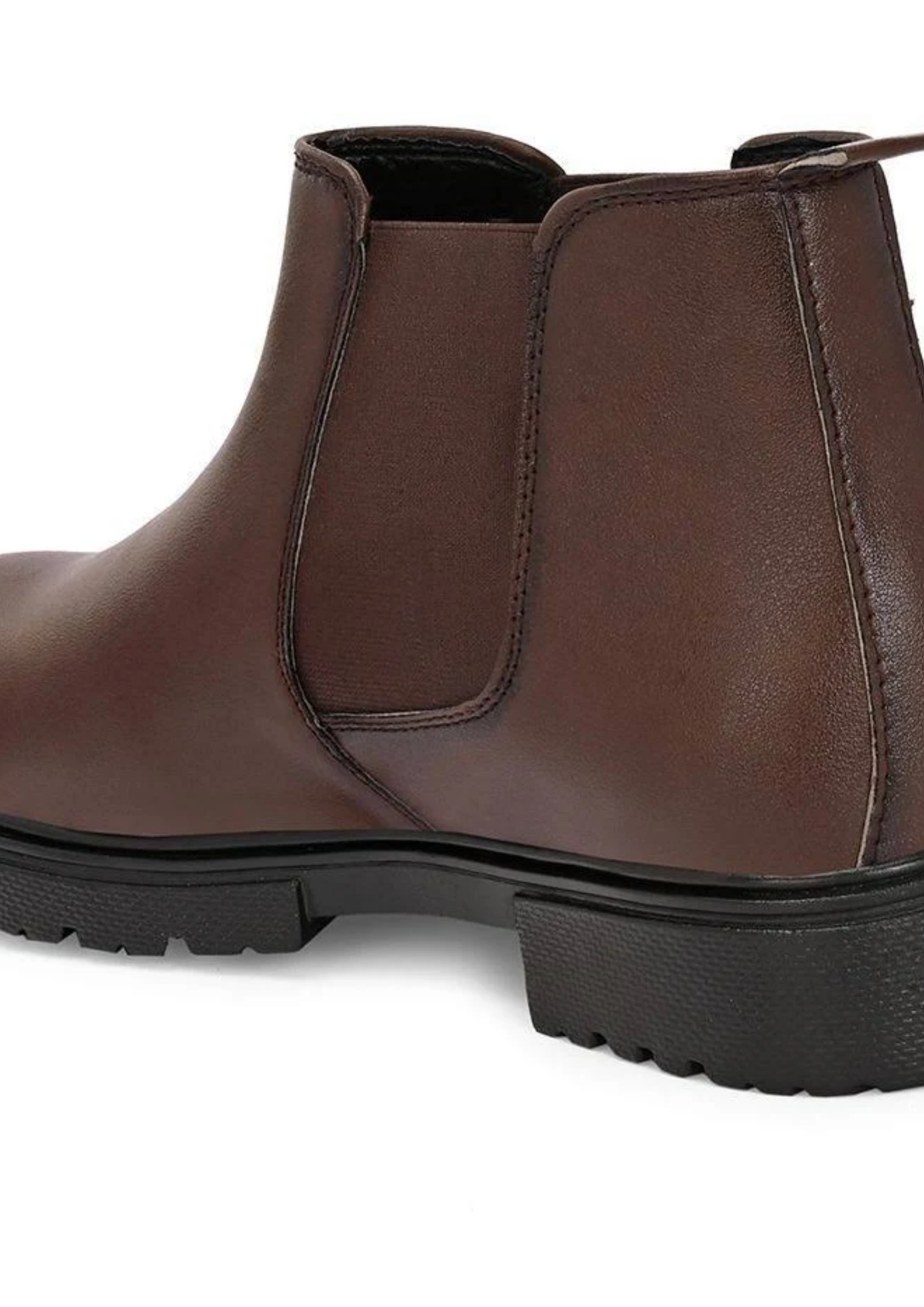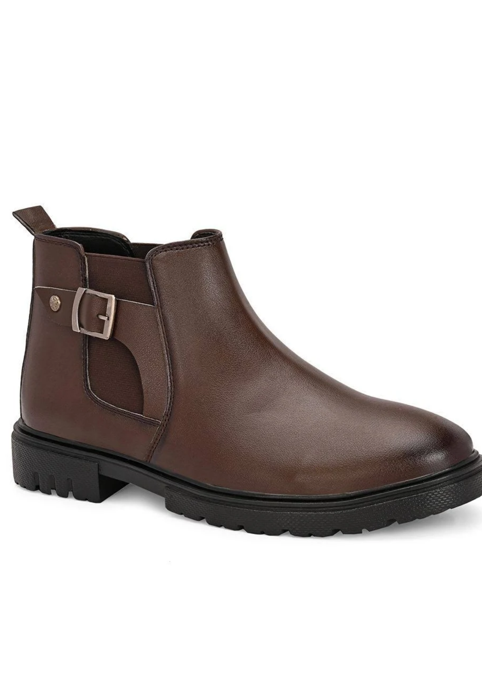 These brown ankle boots are designed for everyday comfort and style. Made with smooth finish material and elastic side panels for easy wear, they provide a comfortable fit for daily use. The strong sole gives good grip and durability. Perfect for office, casual outings, or regular wear.