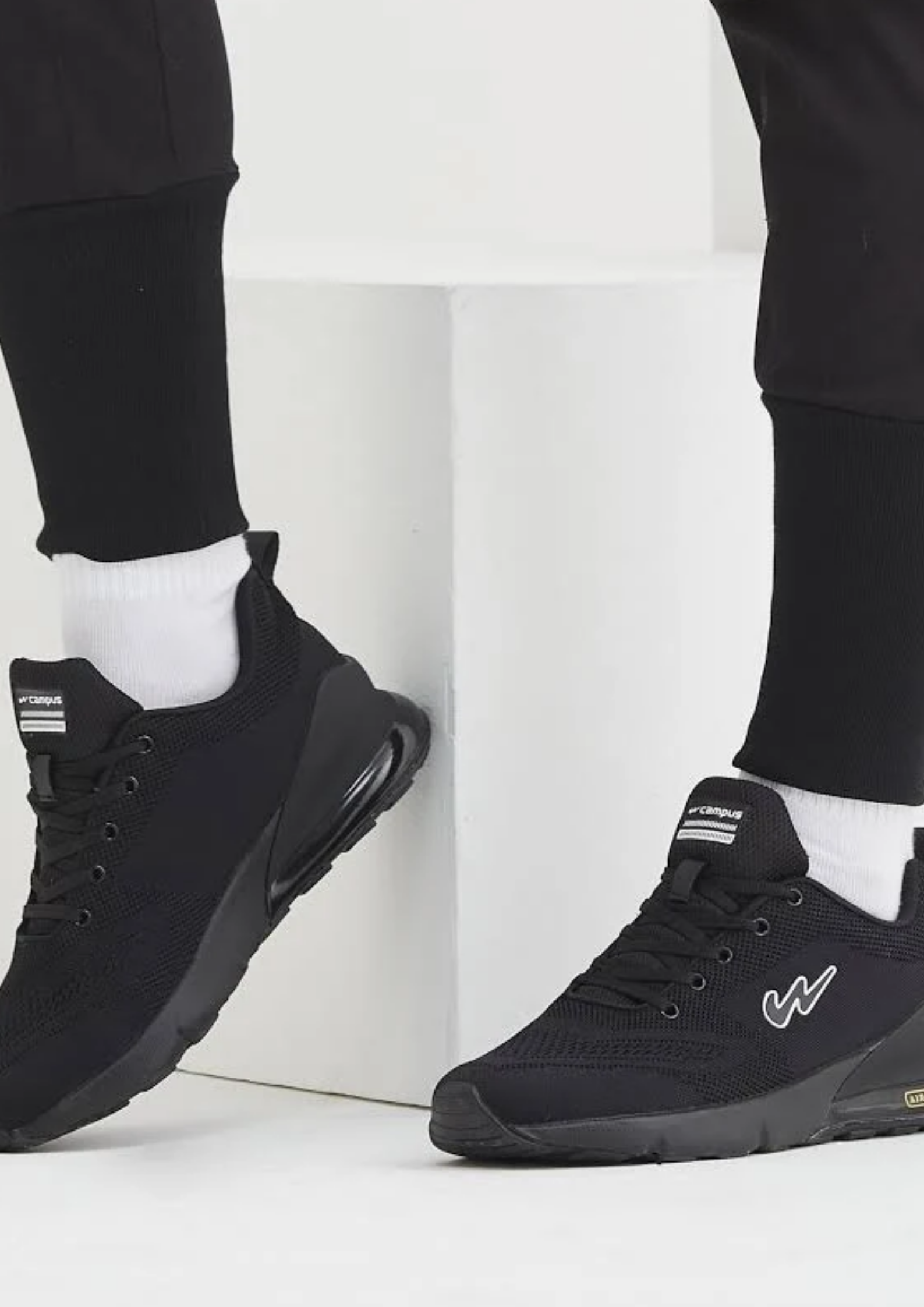 These stylish black sports shoes are designed for comfort and performance. Featuring a breathable mesh upper and an air-cushion sole, they provide excellent support and shock absorption for everyday walking, running, or gym workouts. The lightweight design ensures all-day comfort, while the modern sporty look makes them perfect for casual wear as well.