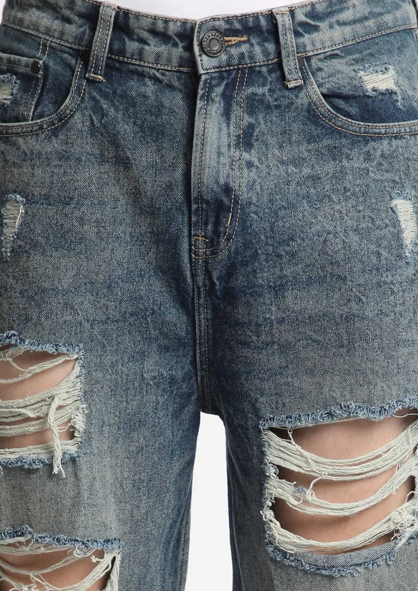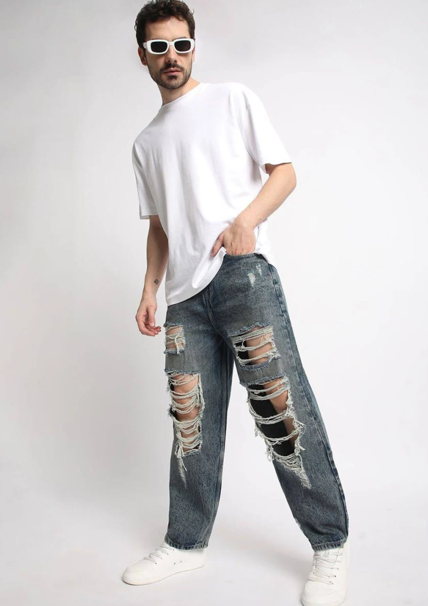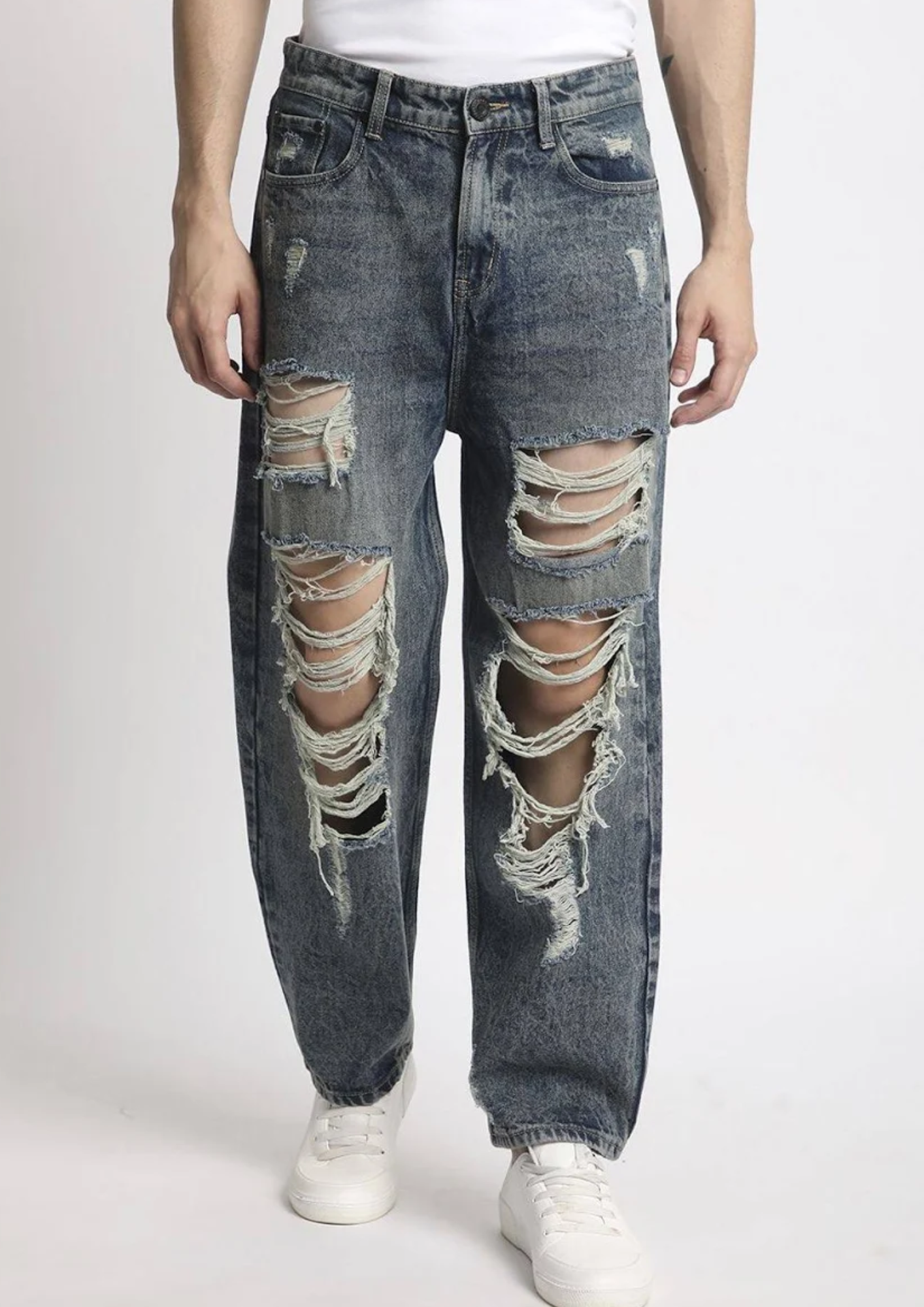 Upgrade your street-style look with these trendy ripped denim jeans. Made with high-quality denim fabric, these jeans offer a comfortable fit and a modern distressed design. The ripped pattern gives a bold and fashionable vibe, perfect for casual outings, parties, or everyday wear. Pair them with a t-shirt, hoodie, or sneakers for a cool and stylish appearance.
