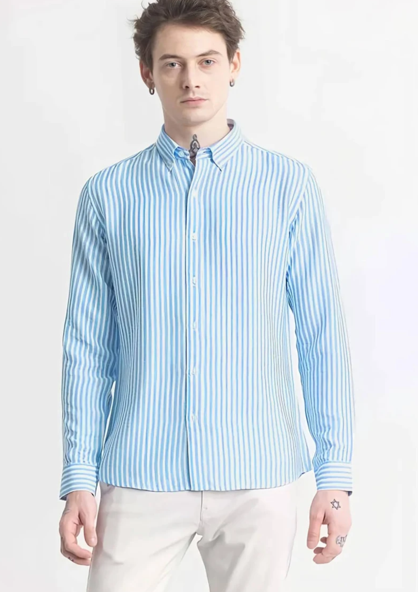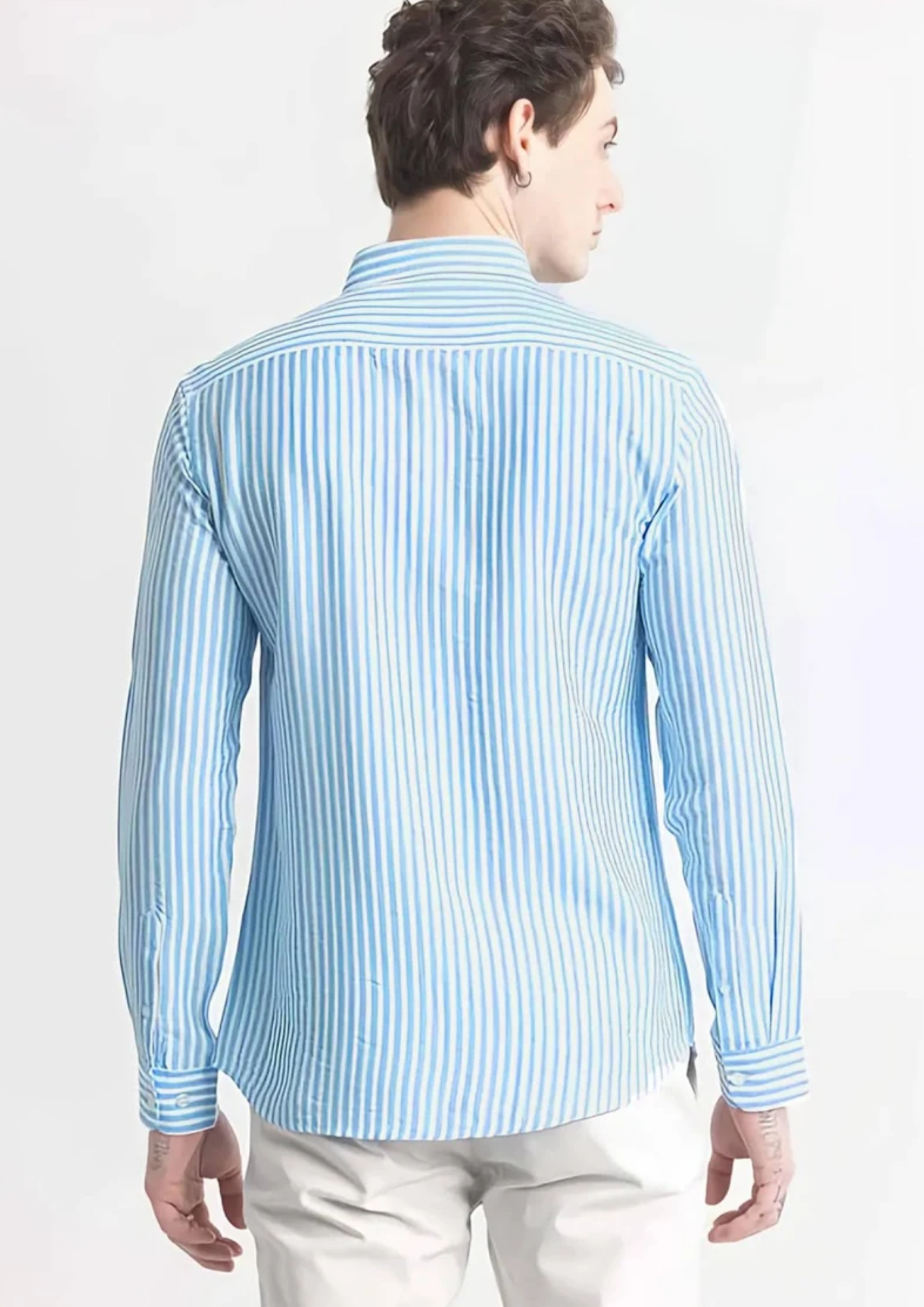 Upgrade your wardrobe with this stylish blue and white striped slim fit shirt, designed for a modern and confident look. Crafted from premium-quality breathable fabric, this shirt ensures all-day comfort while maintaining a sharp and structured appearance. The vertical stripe pattern adds a touch of elegance and creates a smart, refined style suitable for both casual and semi-formal occasions.