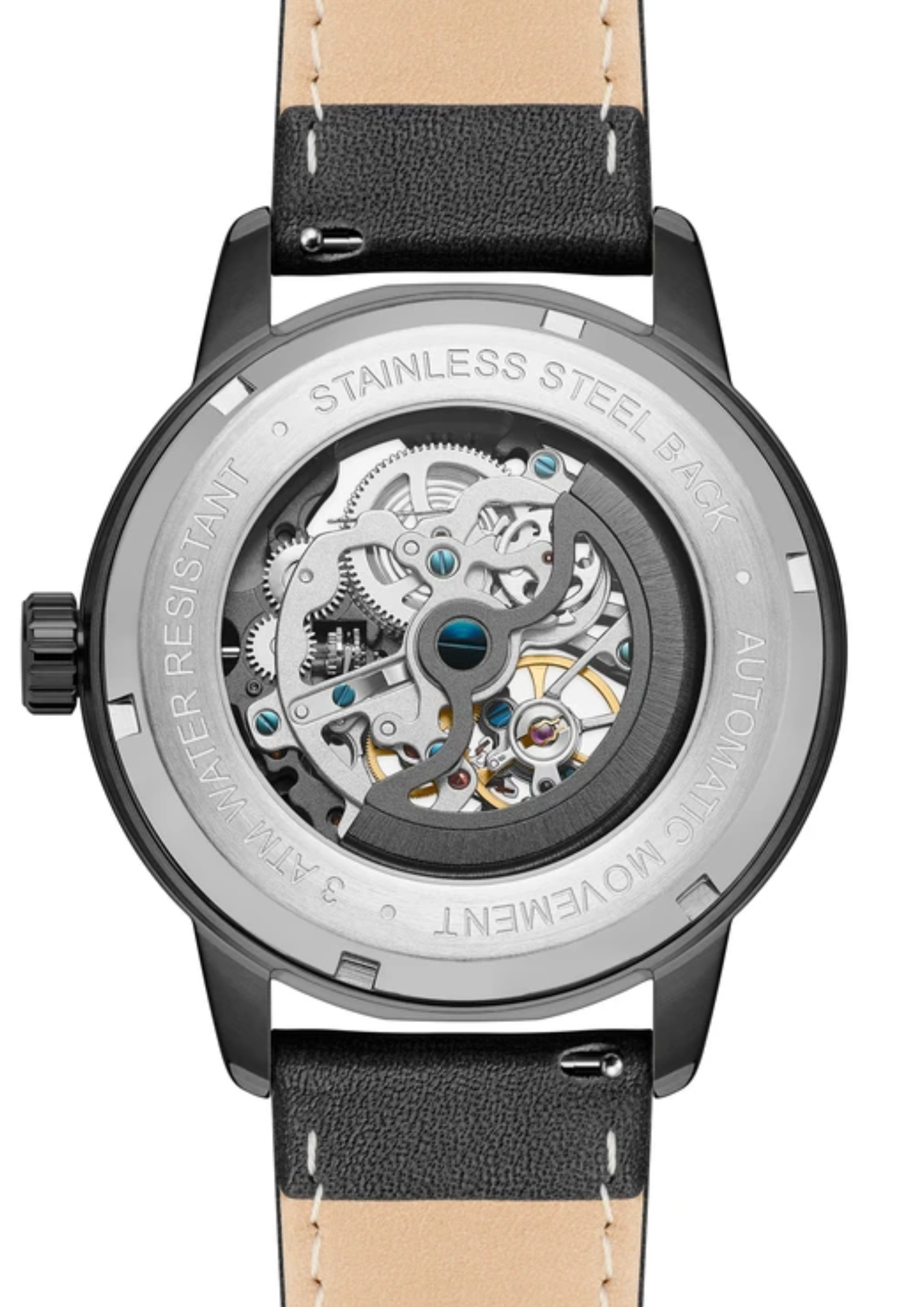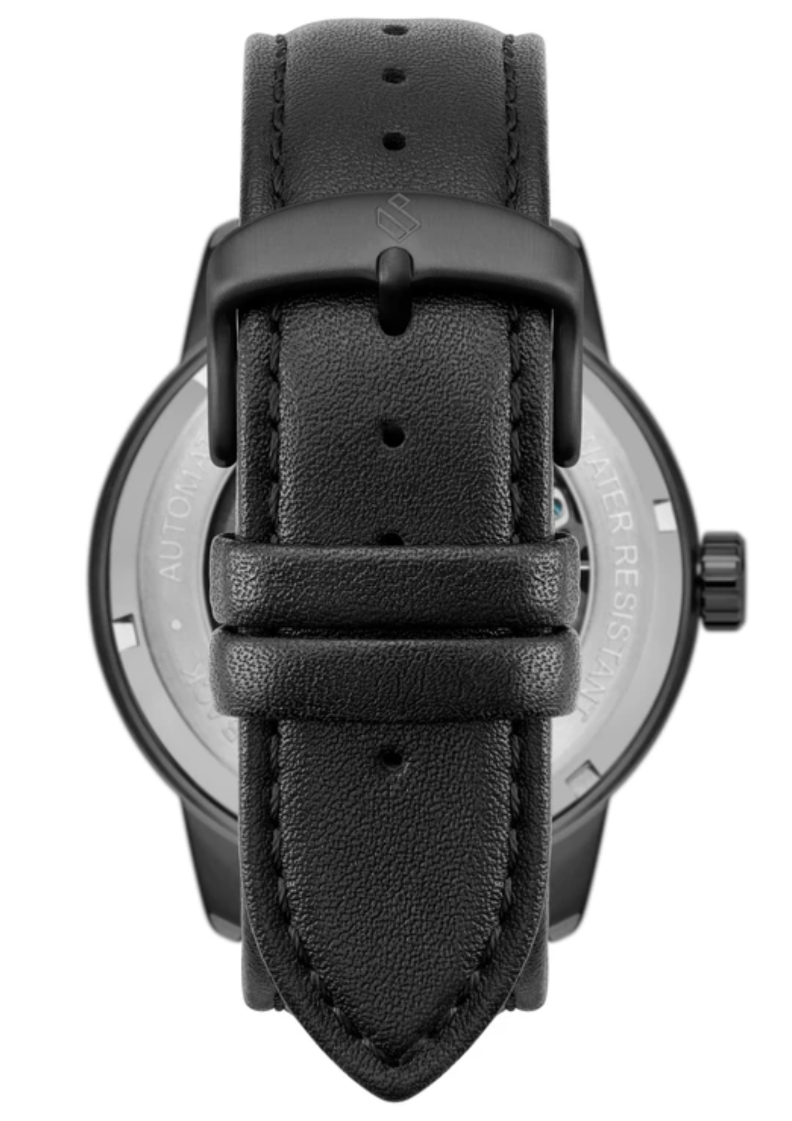Seizmont Automatic Skeleton Black Leather Watch (Danish Design)