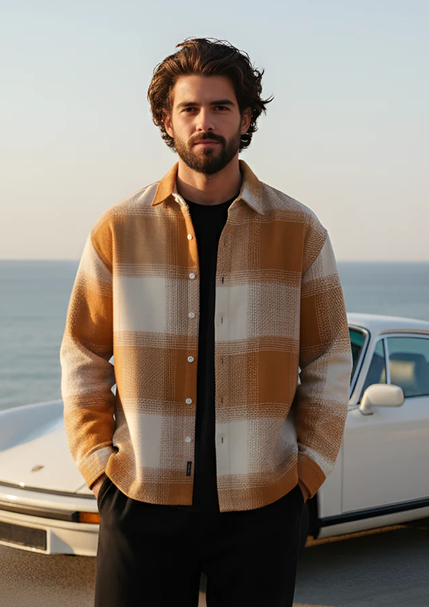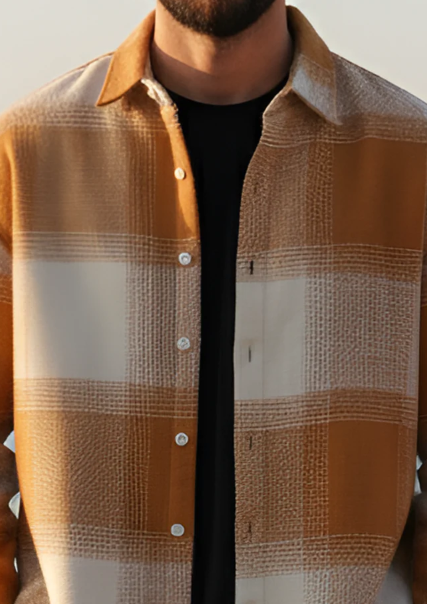 Upgrade your layering game with this premium checkered overshirt jacket. Crafted with a soft textured fabric and designed in warm earthy tones, it offers the perfect balance of comfort and refined style. The relaxed fit and sturdy button closure make it ideal for casual outings, evening drives, or weekend getaways. Pair it with a basic tee and trousers for a smart, effortless look.